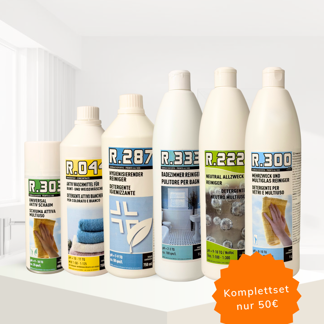 Unser Premium Reinigungspaket vereint 6 leistungsstarke Produkte für ein strahlend sauberes Zuhause. Ideal für Küche, Bad und Wohnräume – mit frischem Duft, hygienisierender Wirkung und leichter Anwendung. Perfekt für alle, die Wert auf echte Sauberkeit legen.